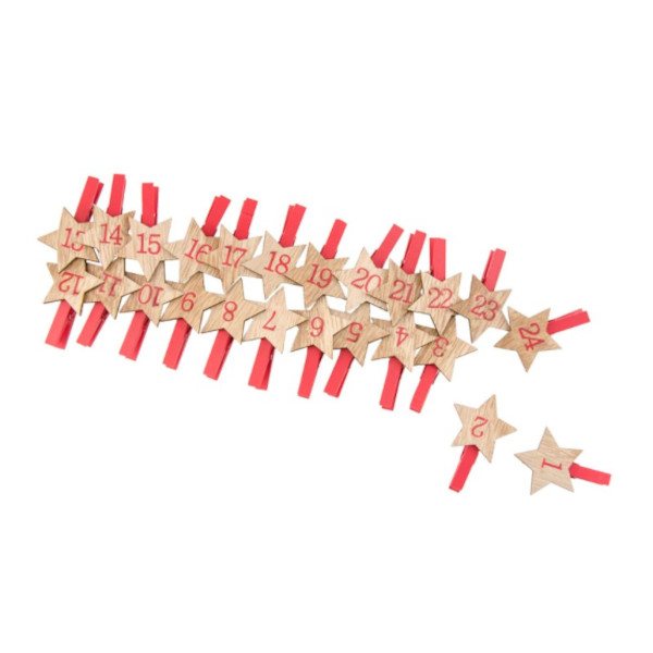 Drevené štipce s číslami na adventný kalendár využijete pre vlastnoručne vyrobené adventné kalendáre.