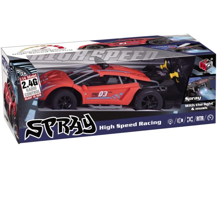 Toto pretekárske auto na diaľkové ovládanie jazdí dopredu, dozadu, zatáča doprava a doľava.