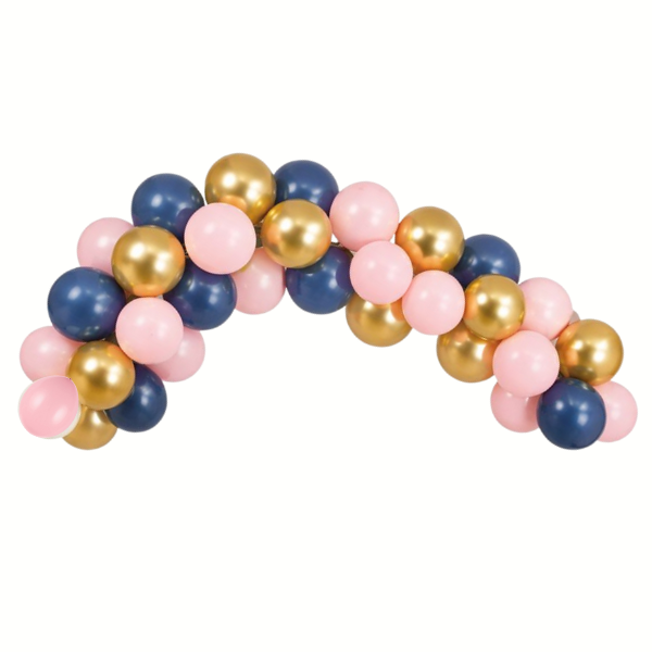 Elegantný balónový veniec v kombinácii zlatej, ružovej a modrej farby, ktorý si ľahko vytvoria aj ľudia bez dekoratérskych zručností. Skvele sa hodí na narodeniny, oslavy a moderné večierky, kde chcete výraznú, ale stále decentnú výzdobu.