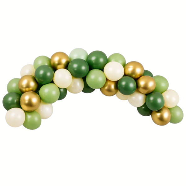 Štýlový balónový veniec v kombinácii zelených odtieňov a zlatých akcentov, ktorý ľahko vytvoria aj ľudia bez dekoratérskych znalostí. Ideálna dekorácia na narodeniny, záhradné párty, svadby a elegantné tematické večierky.