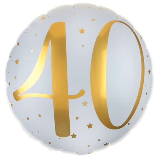 S týmto krásnym balónikom so zlatým číslom 40 a zlatými hviezdami na bielom pozadí si vytvoríte tú správnu narodeninovú dekoráciu.