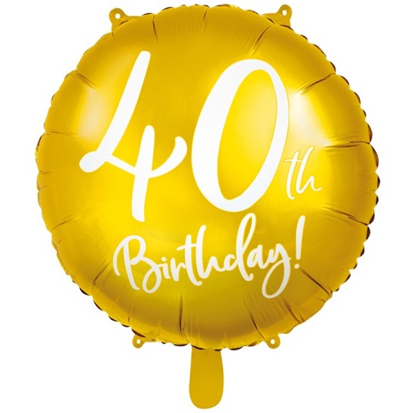 Fóliový balónik v zlatej farbe k životnému jubileu 40. narodenín s bielym nápisom.