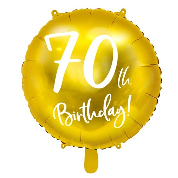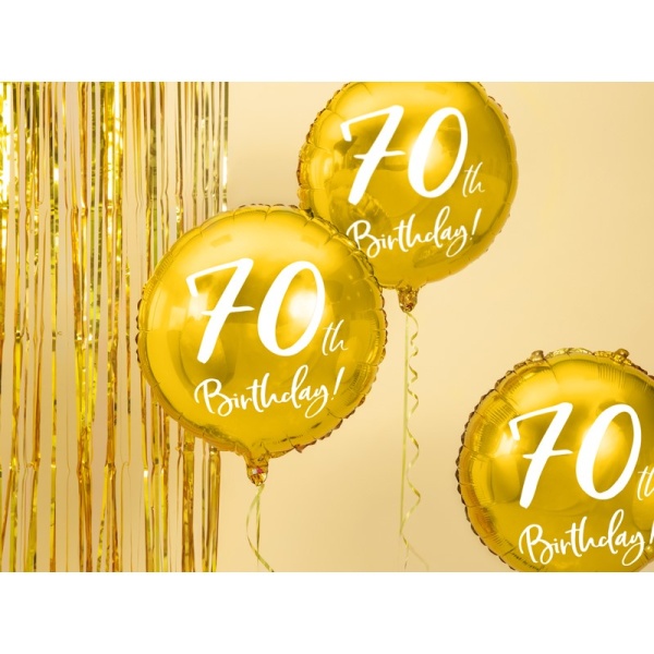Fóliový balónik v zlatej farbe k životnému jubileu 70. narodenín s bielym nápisom.