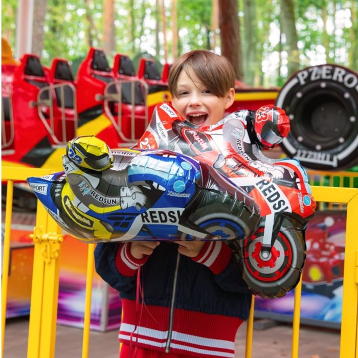 Fóliový balón v tvare pretekárskej motorky je skutočným hitom. Jeho žiarivo červeno-biely dizajn dokonale vystihuje adrenalínovú jazdu na dvoch kolesách.