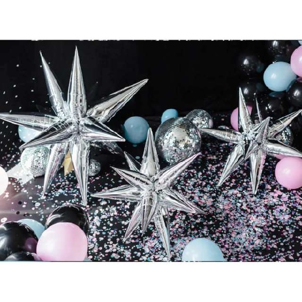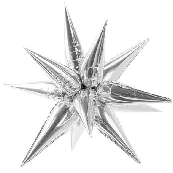 Lesklý fóliový balónik Hviezda 3D Star v striebornej farbe.