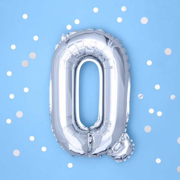 Fóliový strieborný mini balónik v tvare písmena Q je vhodný na každú narodeninovú oslavu.