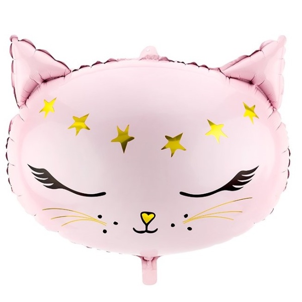Balónik fóliový ružová Mačička so zlatými hviezdičkami na čele je skvelý balón pre vašu mačaciu párty!