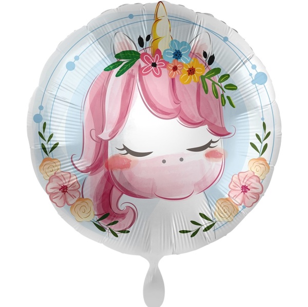 Okrúhly fóliový balónik s obrázkom malého roztomilého Jednorožca.