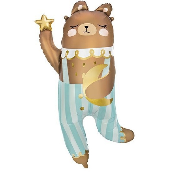 Fóliový balónik v tvare roztomilého medvedíka v pruhovaných modro-bielych nohavičkách