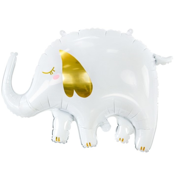 Fóliový balónik Biely spiaci slon so zlatými uškami.