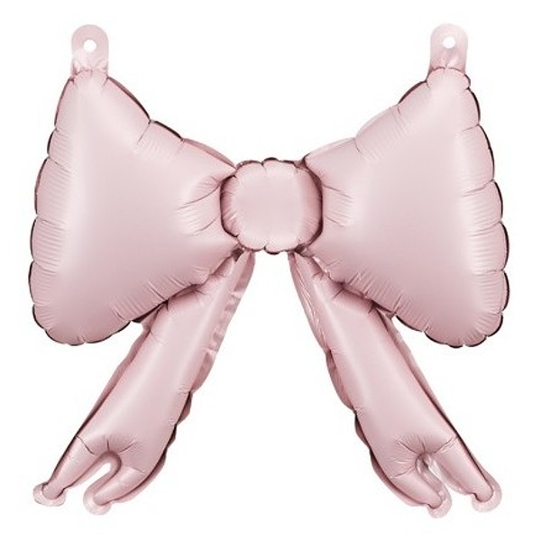 Fóliové balóniky v tvare púdrovo ružových stužiek na ozdobenie balónovej girlandy.