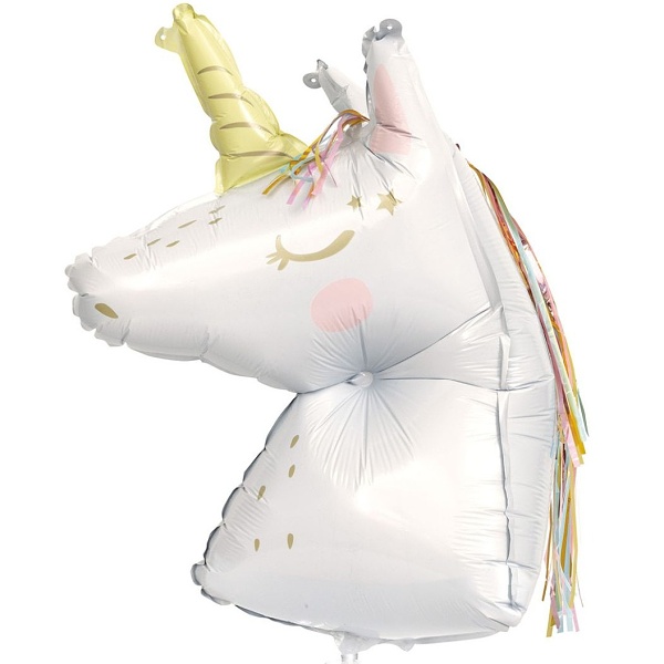 Fóliový balón v tvare hlavy jednorožca je veľmi dekoratívny. Balónik možno nafúknuť klasickým vzduchom alebo héliom, potom ho treba správne zaviazať.