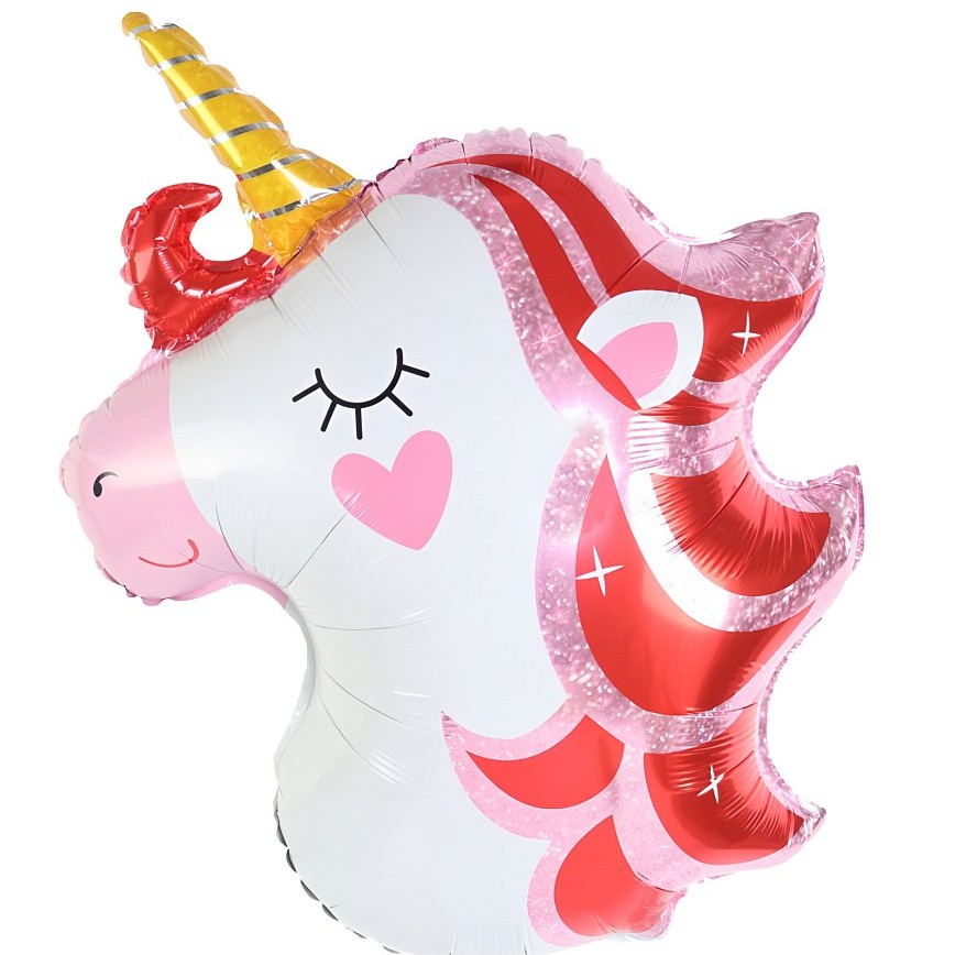 Fóliový balónik v tvare hlavy jednorožca je veľmi dekoratívny. Balónik možno nafúknuť klasickým vzduchom alebo héliom, potom ho treba správne zaviazať.