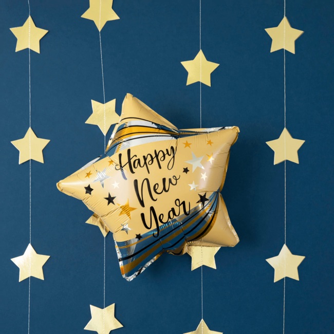 | Krásny balón zo zlatej fólie v tvare hviezdy s nápisom Happy New Year Ideálny doplnok na výzdobu vašej silvestrovskej … |