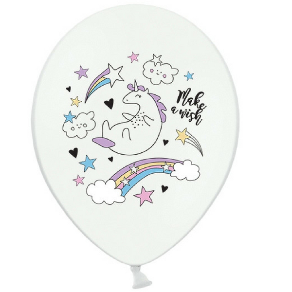 BALÓNIK latexový biely s potlačou "Jednorožec" 30cm
