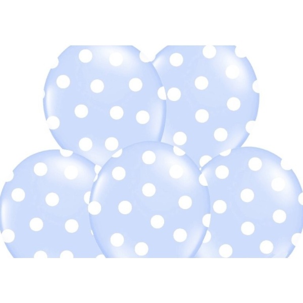 Latexový balónik s bielymi bodkami v pastelovo modrej farbe bude skvelým doplnkom každej narodeninovej