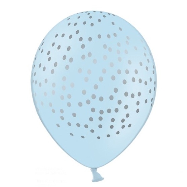 Latexový balónik svetlo modrej farby so striebornými bodkami s celoplošnou potlačou