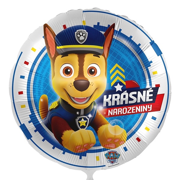 | Okrúhly fóliový balónik s populárnym Chaseom zo slávnej Tlapkovej patroly. Balónik je potlačený českým nápisom "Všetko … |