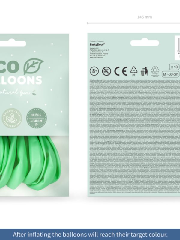 | Vysokokvalitné latexové balóny Eco metallic v mätovej farbe Balóny sú vhodné na nafukovanie vzduchom a héliom veľkosť … |