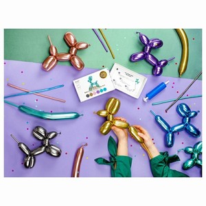 Vyskúšajte si, aké je byť balónikovým kúzelníkom. Vždy ste sa chceli naučiť tvarovať balóniky, aby sa podobali psíkovi? To je možné s touto zábavnou balónikovou sadou Glossy pre domácich majstrov. Sada obsahuje 30 balónikov, 1 pumpičku a pokyny.
