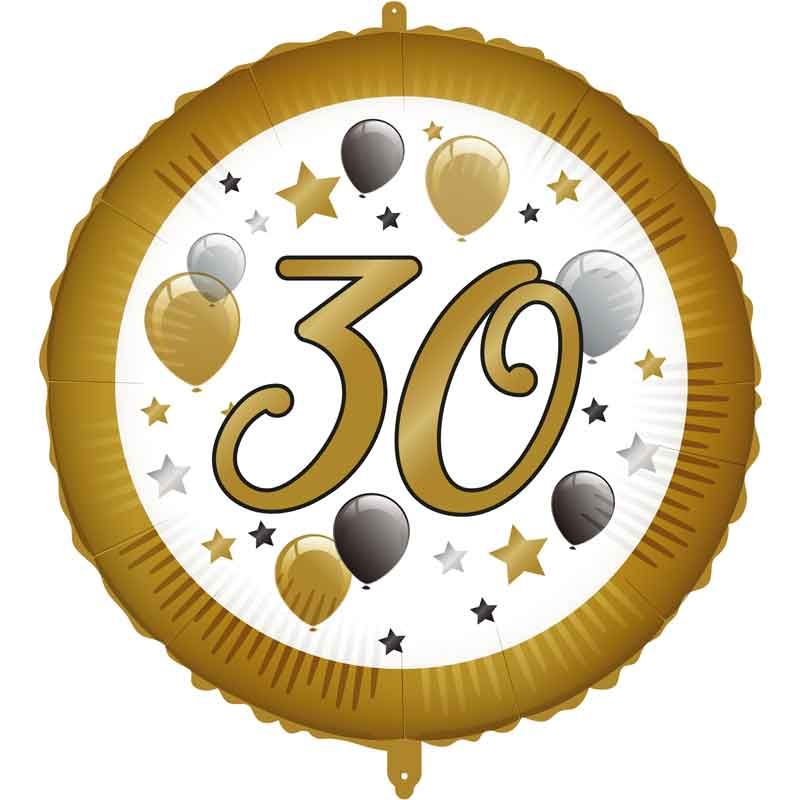 Oslávte svoje 30. narodeniny s týmto okrúhlym bielo-zlatým balónikom s číslom 30.