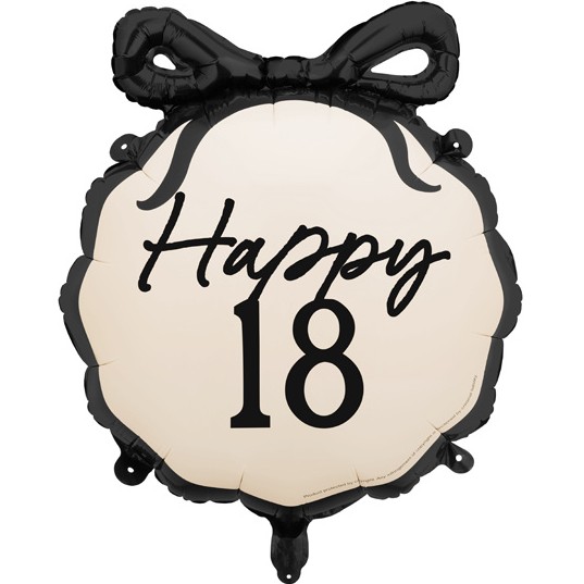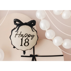 Krémový fóliový balón s čiernou mašľou a Happy 18