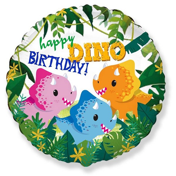 Narodeninový fóliový balónik v okrúhlom tvare Dino pre najmenších oslávencov a obdivovateľov dinosaurov.