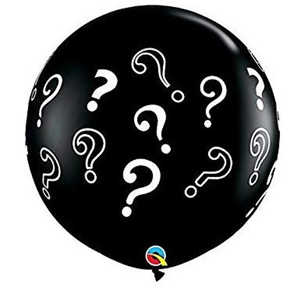 Extra veľký latexový balón v čiernej farbe s bielou potlačou otáznika