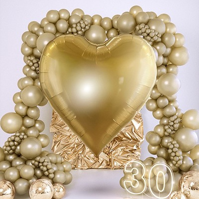 Tento obrovský fóliový balón v tvare srdca v elegantnom zlatom odtieni bude ozdobou každej oslavy.