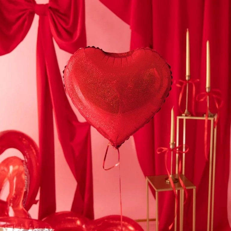 Tento elegantný červený balón s trblietavým efektom je skvelou voľbou na špeciálne príležitosti, ako je Valentín, výročia, svadby alebo narodeniny.