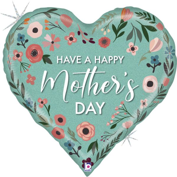 Fóliový holografický balónik v tvare srdiečka s nápisom Mother's Day
