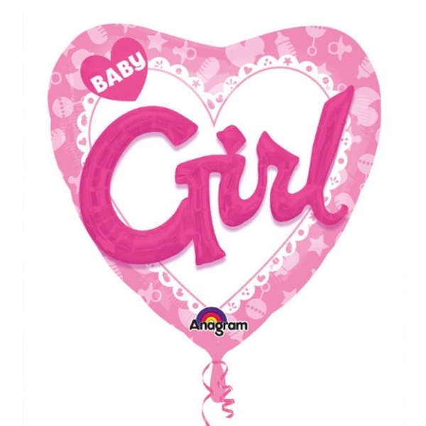 Fóliový multibalónik 3D v tvare srdca s nápisom Baby girl