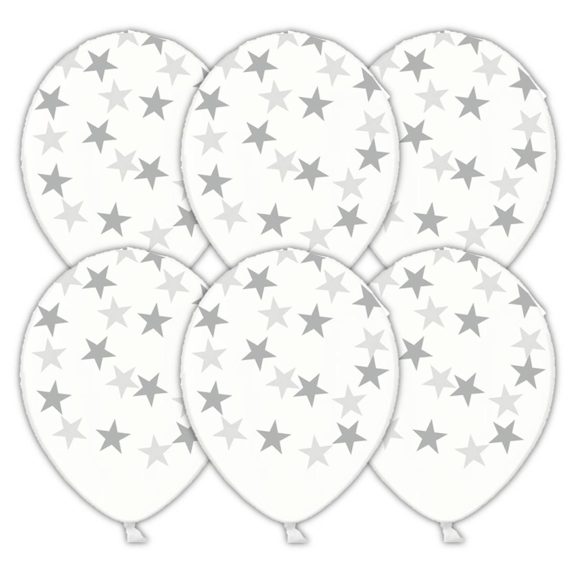 Transparentný (priehľadný) latexový balónik s obojstrannou potlačou strieborných hviezd.