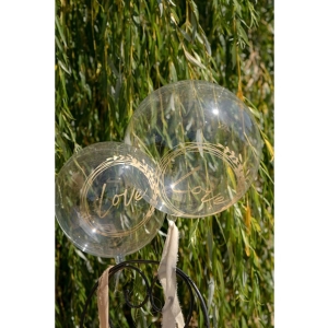 Dekoračná fóliová bublina, ktorá je transparentná so zlatým nápisom LOVE.
