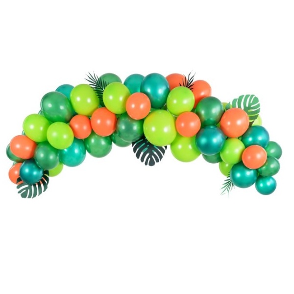 Sada obsahuje celkom 60 ks latexových balónikov - 16 ks metalických vo farbe zelenej trávy, 17 ks pastelových