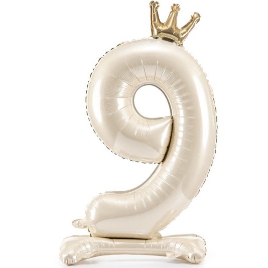 Svetlý krémový balón s číslom 9 a zlatou korunkou