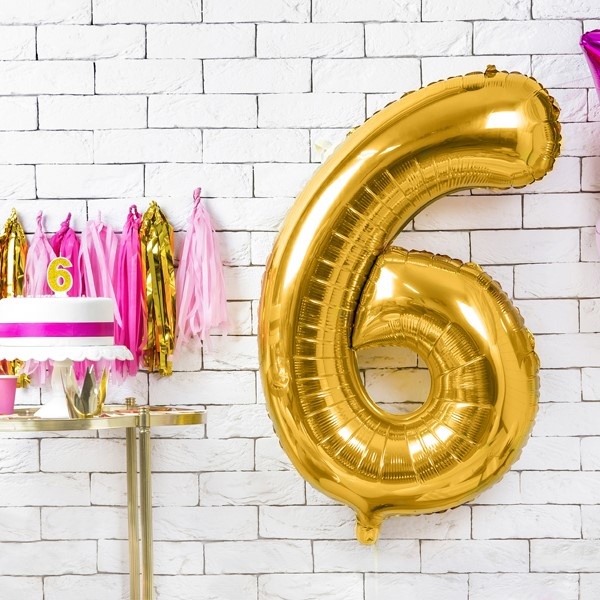 Fóliová zlatá číslica 6 je vhodným doplnkom výročnej, novoročnej aj narodeninovej výzdoby.
