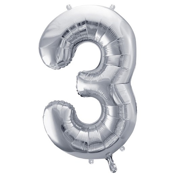 MojaParty Balóniky a hélium Nafukovacie balóny Balóniky fóliové číslica Balónik fóliový číslo 3 strieborné 72 cm
