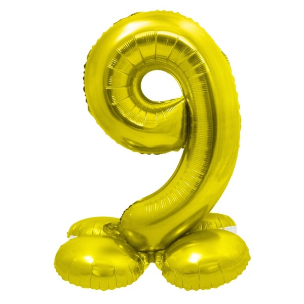 | Zlatý fóliový samostatne stojaci balónik číslo 9 Balónik je vhodný na oslavu narodenín, výročia, jubileí a iných … |
