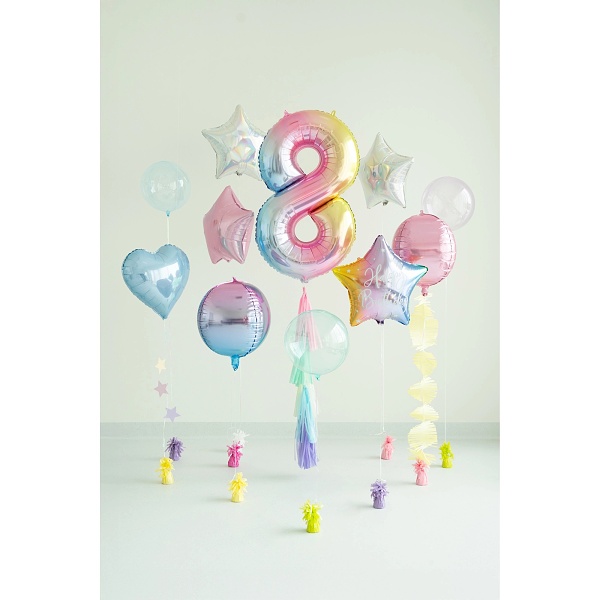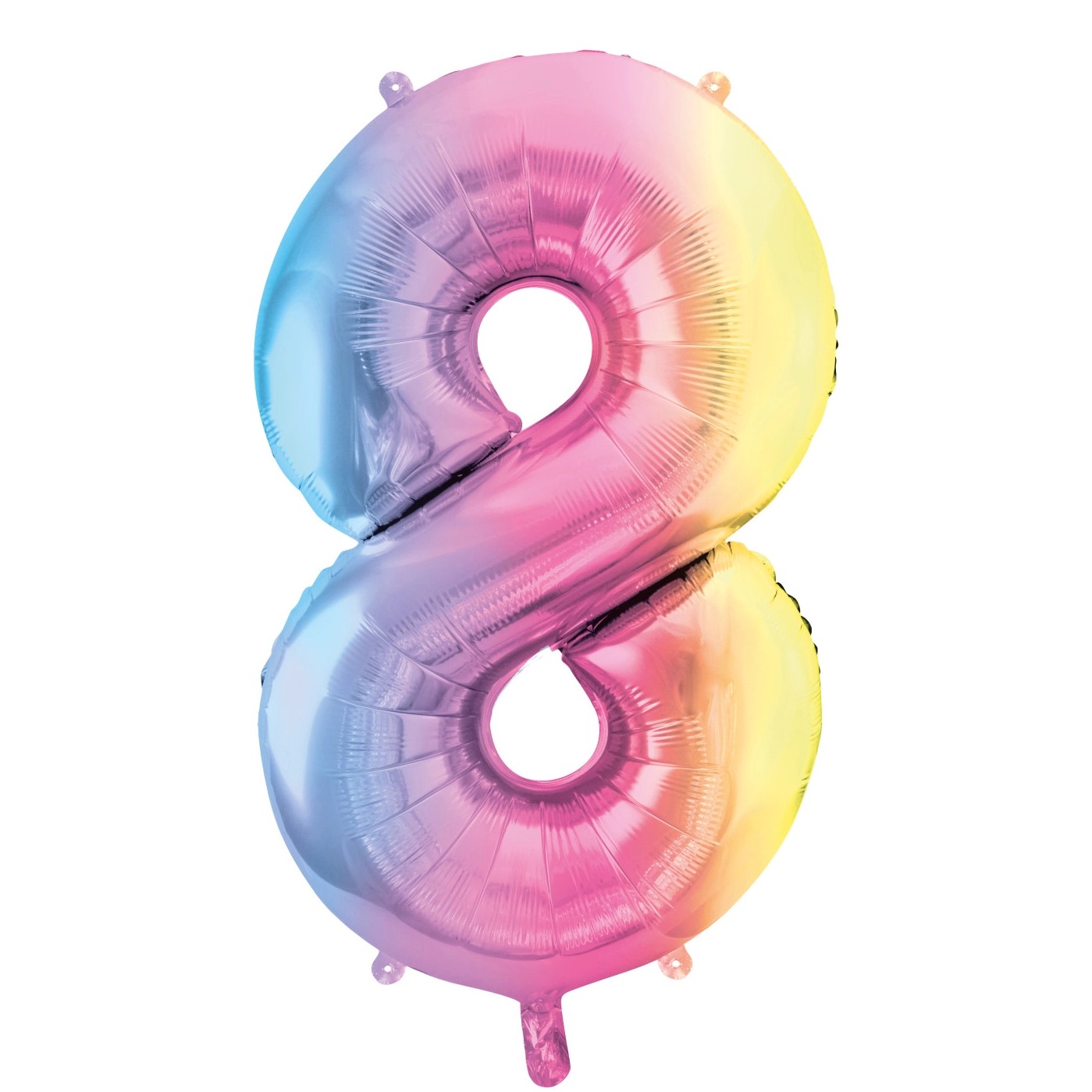Fóliový balónik s číslom 8 v pastelovej dúhovej farbe je ideálnou voľbou na akúkoľvek narodeninovú oslavu alebo tematickú párty k výročiu. Vďaka jemným farbám sa stane neprehliadnuteľnou dekoráciou, ktorá dodá slávnostnej atmosfére jedinečný magický nádych.