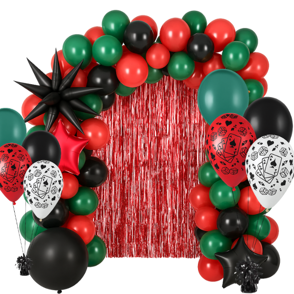 Vytvorte atmosféru kasína plnú vzrušenia a elegancie! Táto dekoratívna párty súprava v červenej, čiernej a zelenej farebnej kombinácii je ideálna na tematické párty, firemné večierky a Silvester.
