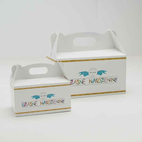 Krabička Úžasné narodeniny môže slúžiť ako obal na darček pre oslávencov alebo ako obal na výslužku pre vašich narodeninových hostí. Narodeninový vzhľad umocní popis v českom jazyku.