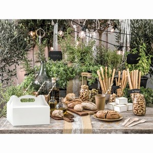 Papierové krabičky na zákusky alebo svadobnú výslužku v bielej farbe by rozhodne na vašej oslave nemali chýbať.