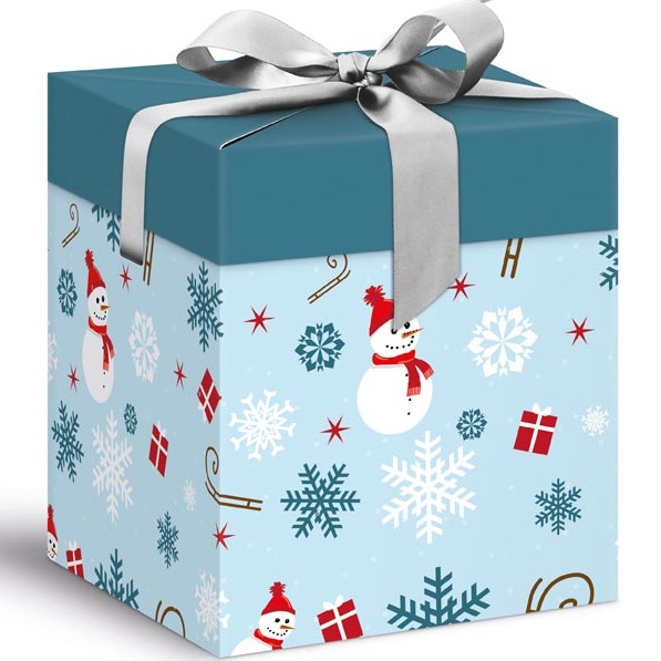 Darčekový papier Vianočná krabica modrá so snehuliakmi