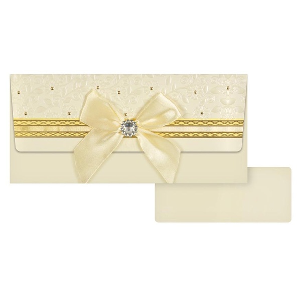 Darčeková obálka na krém na peniaze s mašľou so zlatými doplnkami pre oslávenca alebo novomanželov.