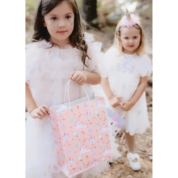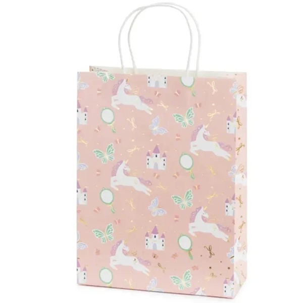 Táto darčeková taška s atraktívnym dizajnom jednorožcov poteší rovnako ako jej obsah.