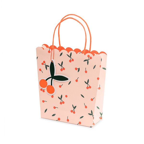 | Originálna ružová taštička s potlačou čerešní a ozdobným okrajom bude krásnym obalom pre váš darček na každej letnej … |