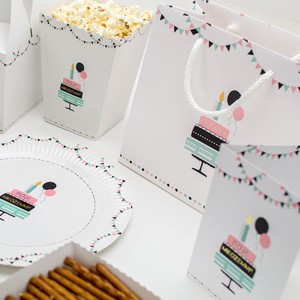 Pokiaľ máte darčekov viac alebo chcete miesto sladkej bonboniéry darovať krabičku plnú sladkostí skombinujte túto tašku s krabičkou s rovnakým narodeninovým designom.