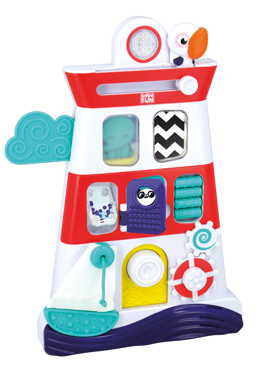 - Senzomotorická hračka v tvare majáka. Maják svieti. Hračka je vhodná pre deti od 9 mesiacov. Výrobok vyžaduje 2× AAA batérie, ktoré sú súčasťou balenia.