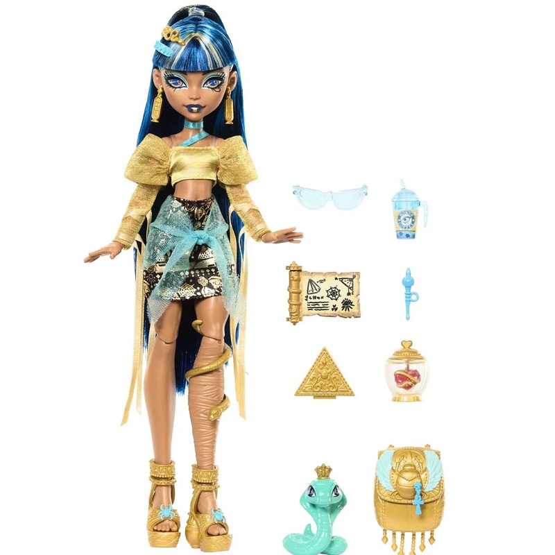 Bábika Cleo De Nile je vo svojom kráľovskom oblečení a doplnkoch pripravená na trochu zábavy.